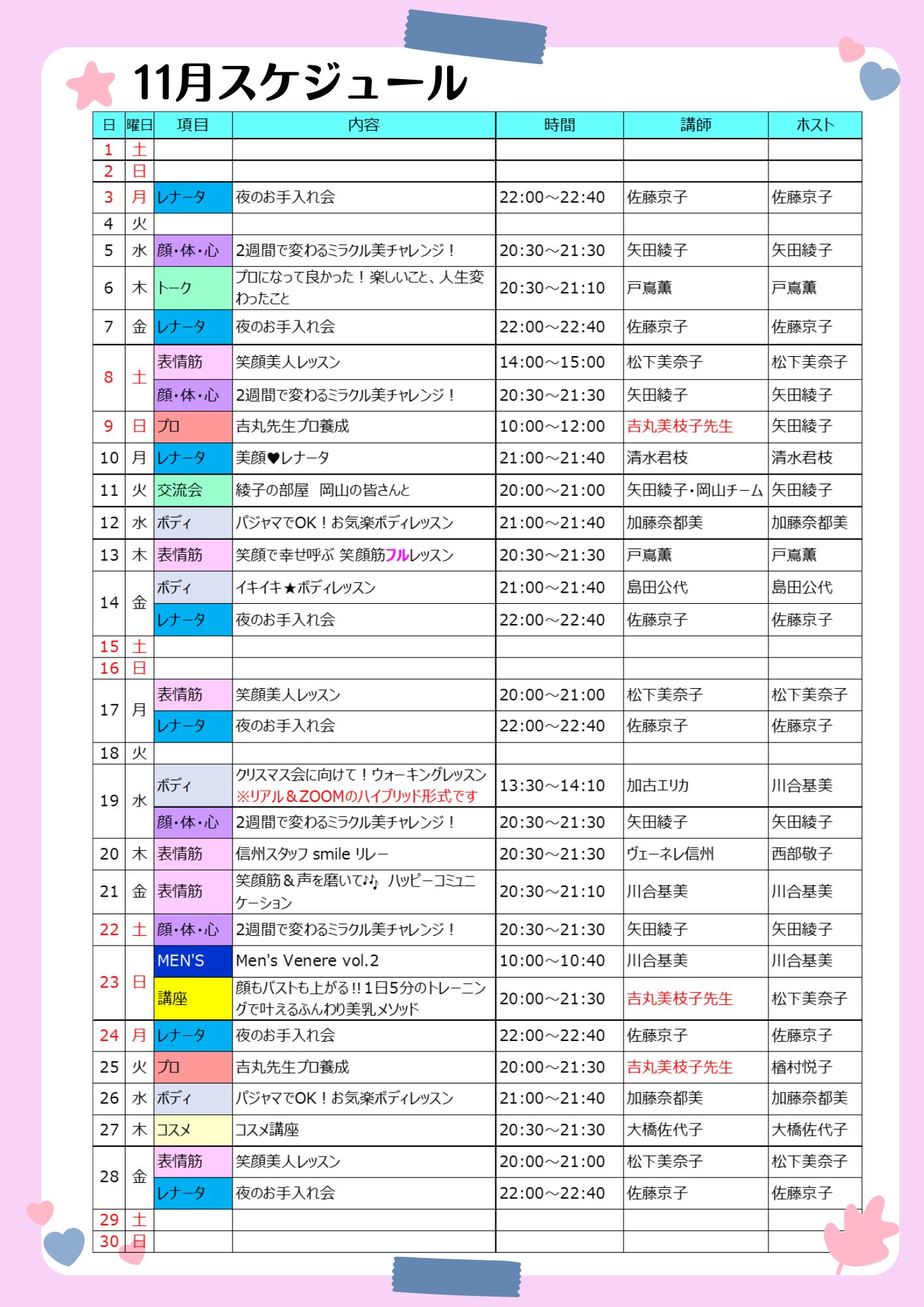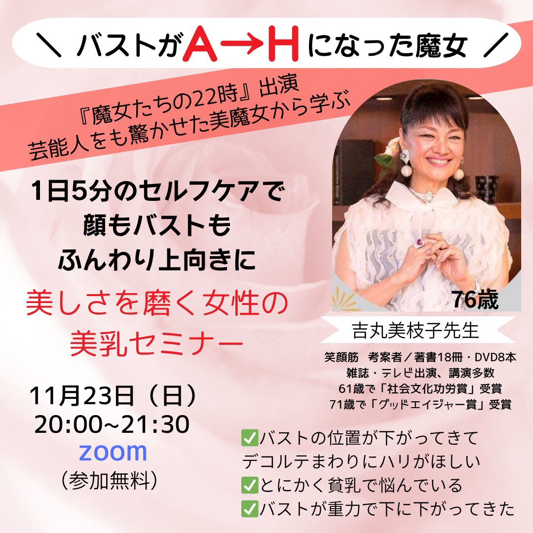 11月23日はヴェーネレ名古屋から「メンズ」と「美乳メソッド」のZOOMをお届けします。