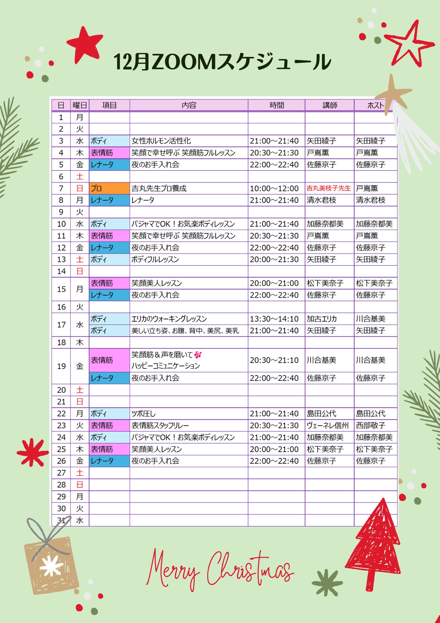 12月のスケジュール